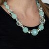 Infused with shimmery silver accents, faceted green beads gradually increase in size as they join below the collar for a refreshing springtime look. Features an adjustable clasp closure.