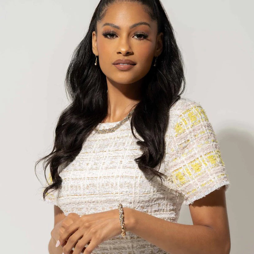 A silver snake chain and a white rhinestone-encrusted dainty gold box chain twists and coils along the neckline, layering into a sassy display of sparkle. Features an adjustable clasp closure.