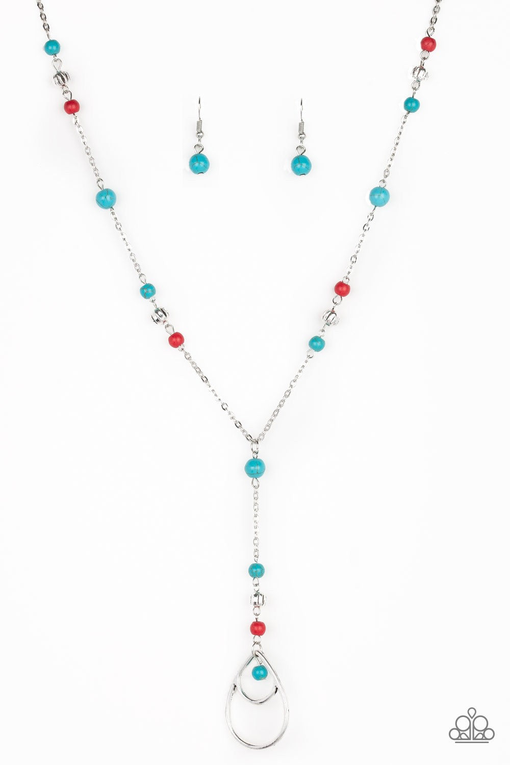 Infused with ornate silver beads, refreshing turquoise and red stones trickle along a shimmery silver chain for a seasonal look. A glistening silver teardrop pendant swings from the bottom for a whimsical finish. Features an adjustable clasp closure.